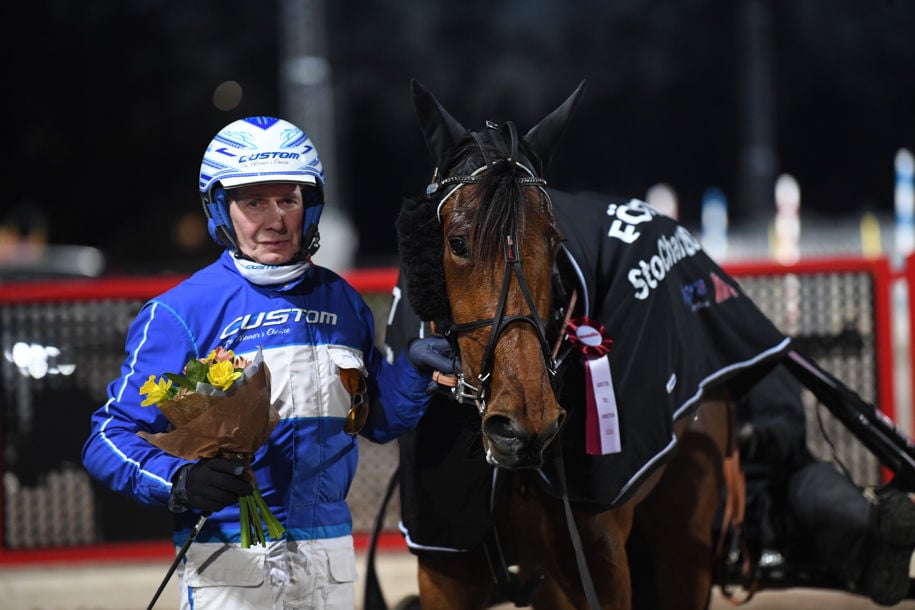 6 O.M.Joffrey - Anton Knutsson. Fjärde utvändigt, lite trafikproblem på slutvarvet, attack 400 kvar, långt fram då, gick snabbast av alla till slut, riktigt fin. Bonus: 11 Stratocruiser - Jesper Rydberg. Stor startgalopp, visade 1.13,2/2000 meter på bra sätt efteråt, toppform.