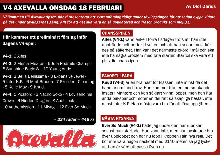 Axevallatipset 18 februari 2026