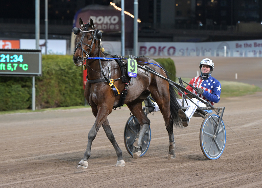 J.C. efter segern på Solvalla. Foto: TR Bild