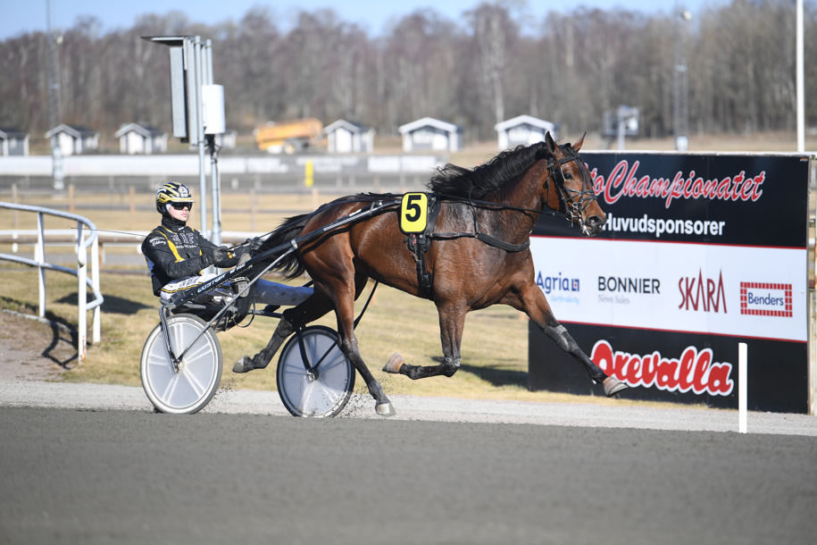1 Pingis - Carlos Söderström. Trea på innerspår, utvändigt ledaren runt sista kurvan, chanslös mot vinnaren, men höll farten bra i årsdebuten.